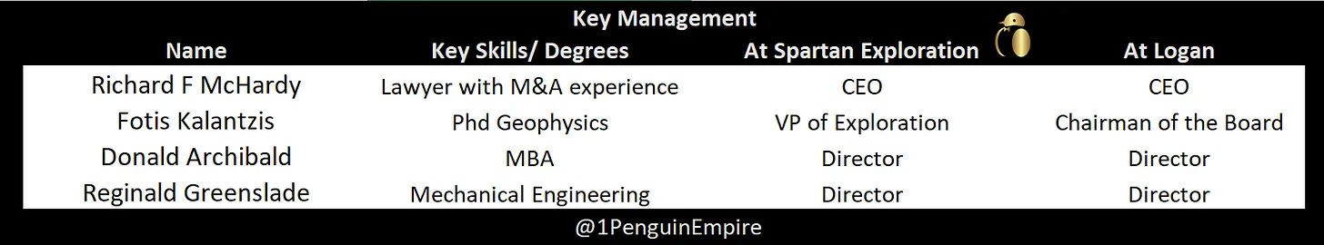 Both Donald Archibald and Rignald Greenslade served on the board at Spartan Exploration, various other positions, and now serve on the board of Logan Energy.
