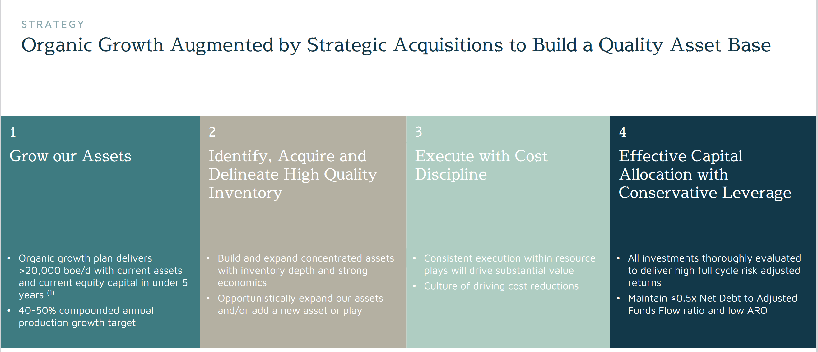 Spartan Delta made two more large deals, acquiring thousands more BOEs/d in 2021. Spartan developed its assets, all while maintaining a pristine balance sheet, with a equity to liabilities ratio of ~ 3:1.1