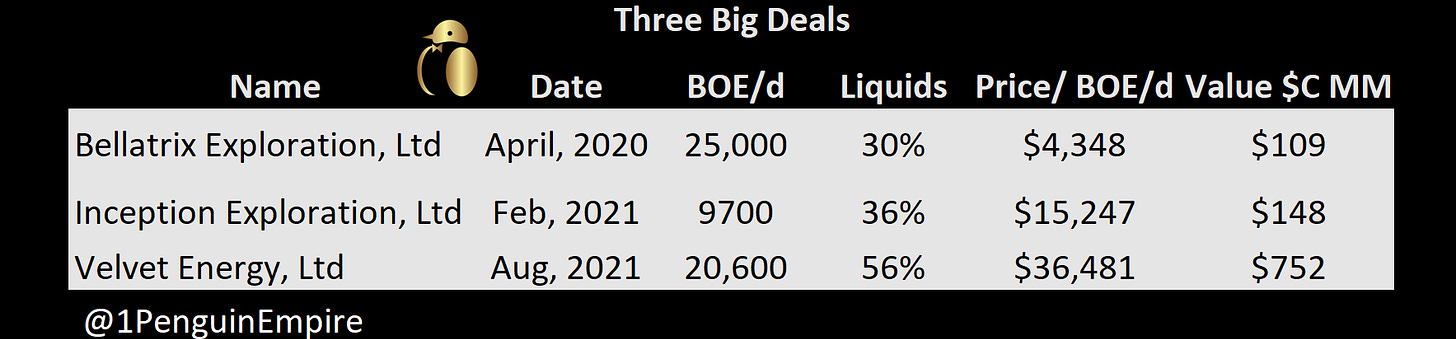 True to form, in April of 2020 (the same month as the negative oil prices) Spartan Delta announced purchased Bellatrix out of bankruptcy. It was an eye-poppingly good deal of ~ C$4,350 per flowing BOE. (As most oil and gas observers know, that is a really good deal. As Kalantzis said in an interview in May 2020, “I probably don’t need to stress (that it’s) something tough to find anywhere else in the basin right now.” And it is still really tough to find anything, anywhere for that price today.
